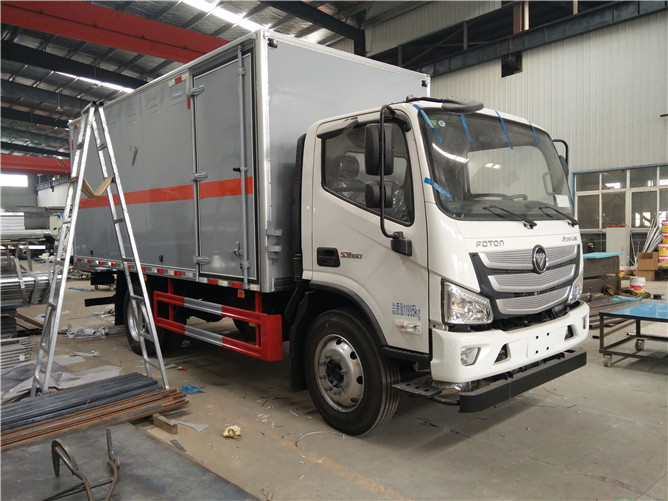 周一上班,危險品廂式車生產車間的各位員工都忙忙碌碌,靠近最后一道工序的地方停放著一輛嶄新的7類放射性物品運輸車,即將出廠。