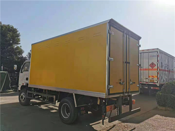 近日,我公司廂式車生產分廠承接一輛氣瓶運輸車,出口至南非,此車為躍進品牌,廂體按照國個用戶要求噴成通體黃色,不僅醒目,且相當美觀。