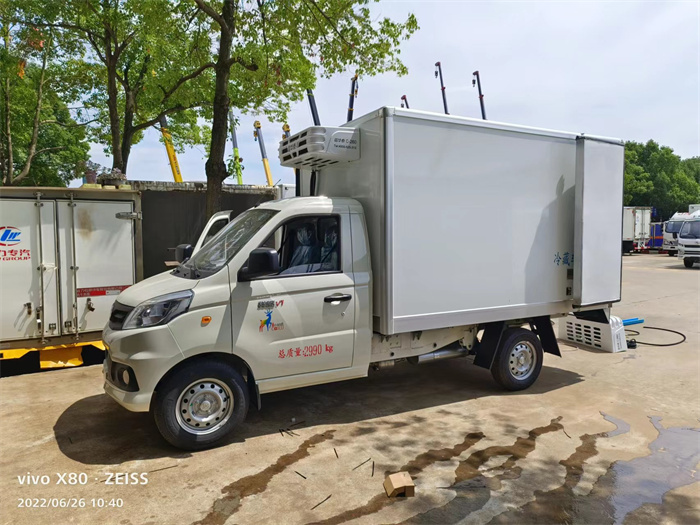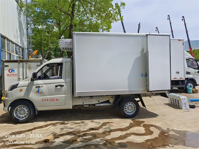 據(jù)悉,該款冷藏車是為安徽合肥一食品公司定制,它搭載東安115馬力發(fā)動機,廂體尺寸為2795×1545×1670mm,整車尺寸為4960×1790×2610mm,帶方向助力,駕駛室內(nèi)帶空調(diào),配置175真空胎。