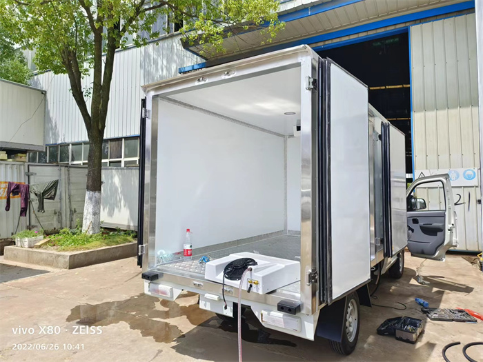 由于運輸物質(zhì)主要為食品、蔬菜,應(yīng)用戶要求安裝零下5度華泰牌制冷機組,且該冷藏車開設(shè)有側(cè)門,且寬度特制為1000mm,方便實際裝卸作業(yè)。