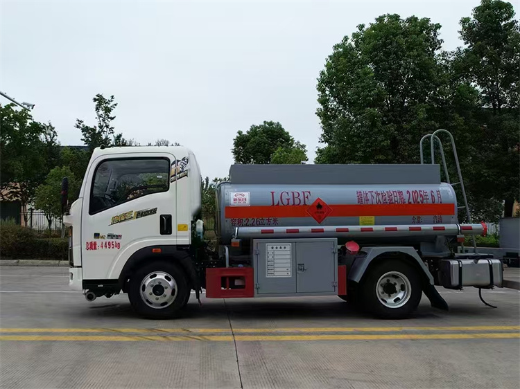 罐體配置:公告容積2.26立方,采用Q235優(yōu)質(zhì)碳鋼板材,標(biāo)配大流量油泵(可泵進泵出),標(biāo)配通倉帶歐標(biāo)全套下裝油系統(tǒng)(含1個下裝卸油閥、1個油氣回收閥、1個油氣回收接口、1套氣動組合開關(guān)、1個防溢流探桿和1個插座),一只歐標(biāo)罐蓋,一個海底閥,罐體頂部兩側(cè)帶折疊升降防護欄,標(biāo)配顏色灰色,罐體兩側(cè)正中貼橙色反光帶,貼三個“易燃液體”標(biāo)識,安全告示牌,合適位置安裝一只工具箱,其它均為廠家標(biāo)配。
