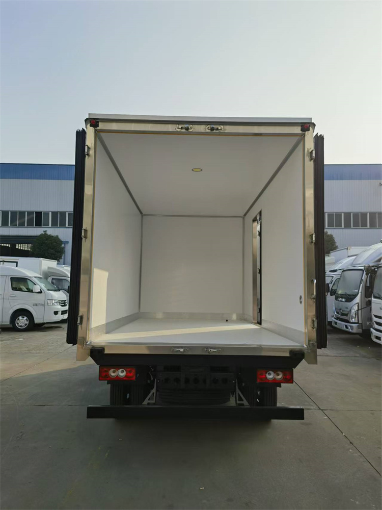 廂體配置:廂體采用加厚玻璃鋼,夾心為高密度保溫材料,整體框架式骨架,保溫板厚度為200px;不銹鋼包角;鋁合金包邊(鋼制密封鉚釘加固);廂體內(nèi)部采用LED照明燈及廂體示寬燈;后門框為加厚不銹鋼門飾;所有門框密封條采用黑色橡膠(新款5葉片帶鋁合金壓條);廂體內(nèi)前置排水孔;上車門把手;副梁采用輕量化高強鋼;螺栓+U型栓+橡膠鋼絲墊皮+護網(wǎng)+擋泥板+3M反光膠板為標準件;箱體純木質(zhì)結(jié)構(gòu),斷橋隔熱;其它標配。